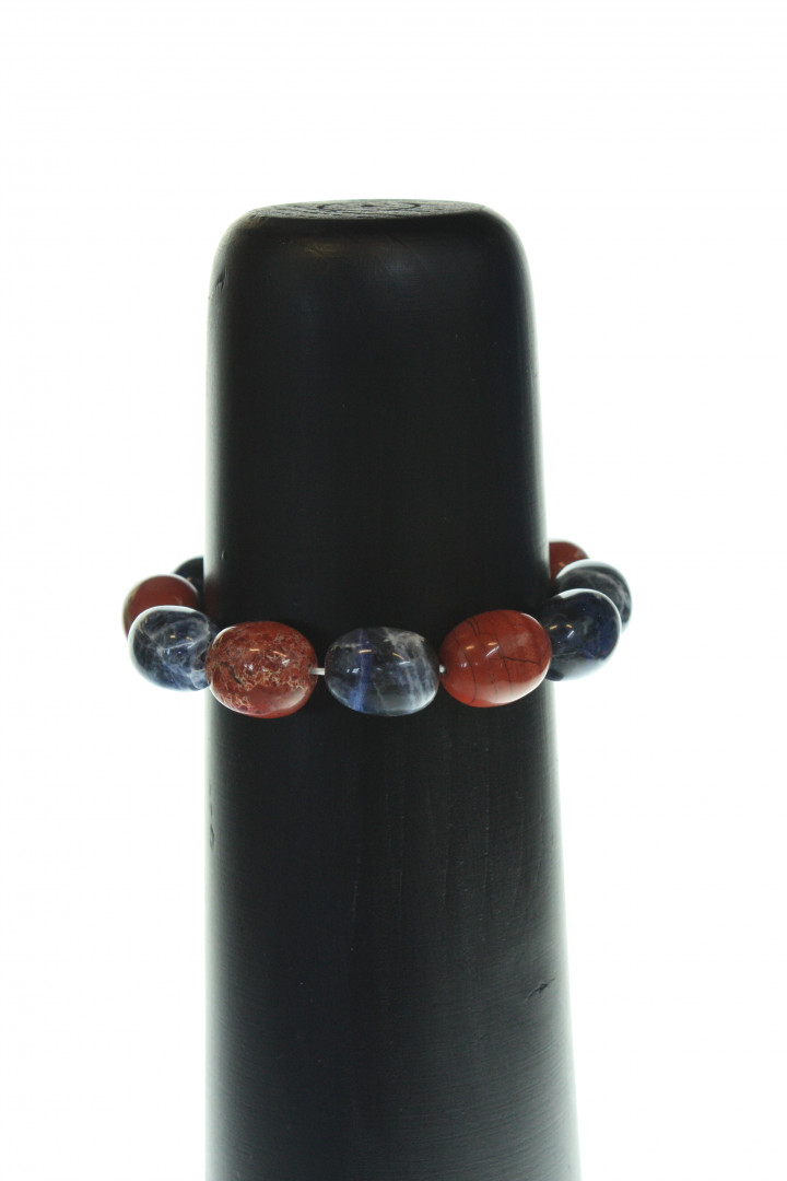 Elastisk armbånd med en tøff kombinasjon av rød jaspis og sodalitt.