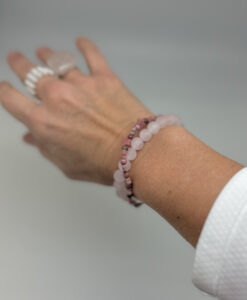 Elastisk armbånd med små, rosa stjerner i Rhodonitt