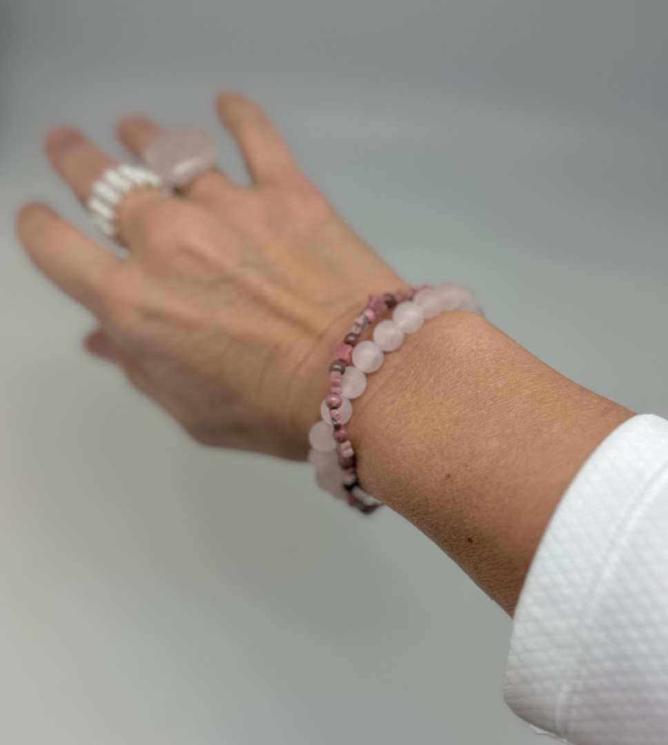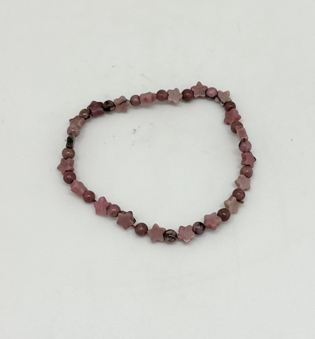 Elastisk armbånd med små, rosa stjerner i Rhodonitt