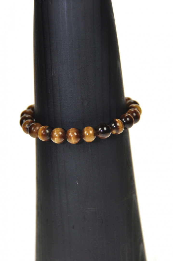 Elastisk armbånd med 8mm polerte kuler i brun, gylden tigerøye.