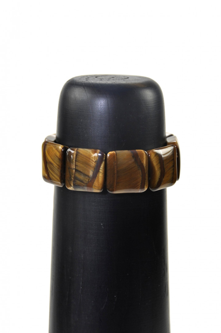 Kraftig, elastisk armbånd med firkanter i brun, gylden tigerøye.