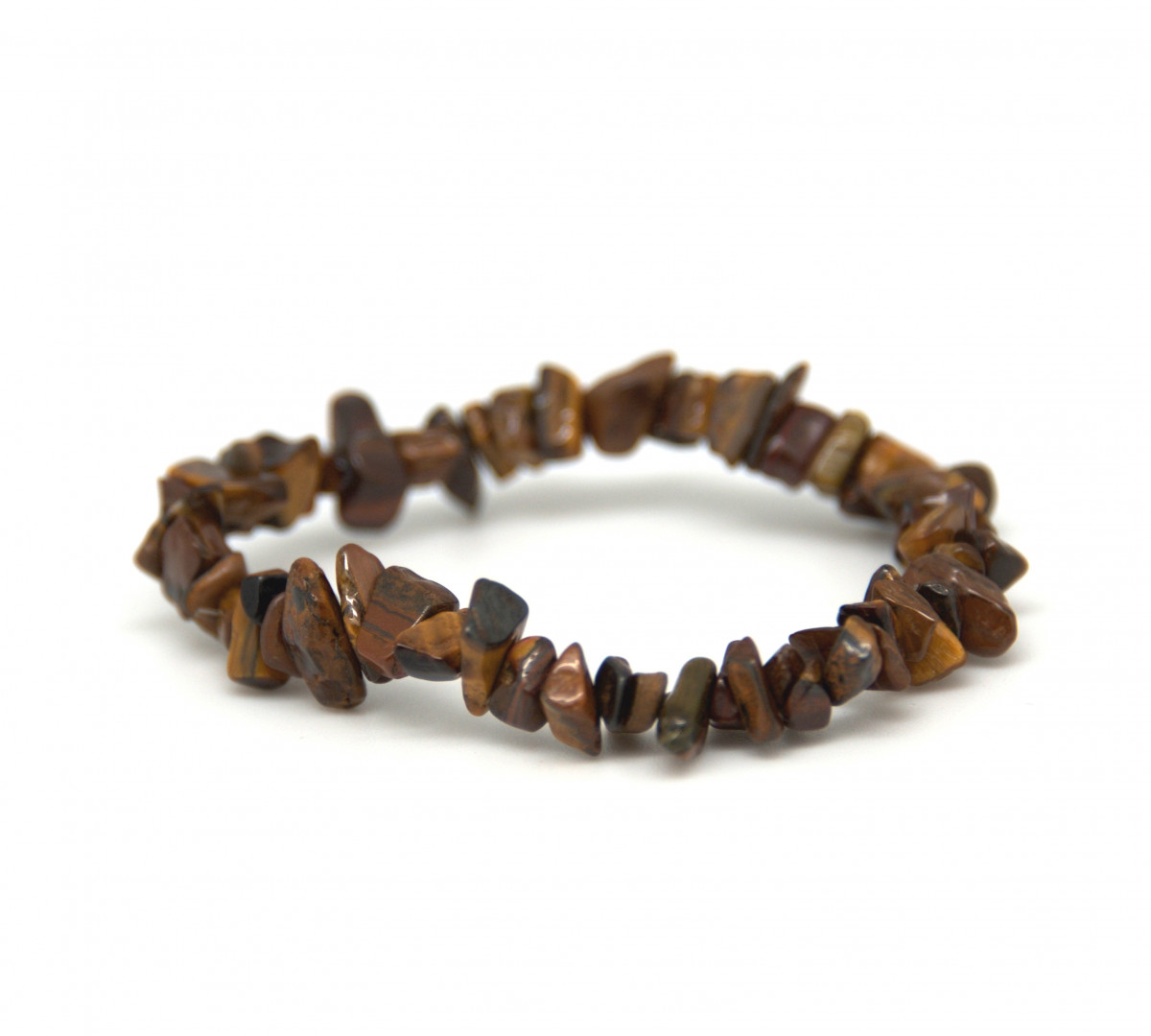Elastisk, enkelt chipsarmbånd med gylden brun tigerøye.