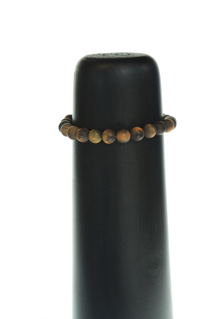 Regulerbart armbånd med 8mm kuler i frosted, lys brun Tigerøye. Et røft armbånd med matt overflate.