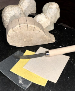 Stegosaurus som du kan forme selv. 3 forskjellige sandpapir og raspe med trehåndtak følger med. Filing med sandpapir bør skje sammen med vann.