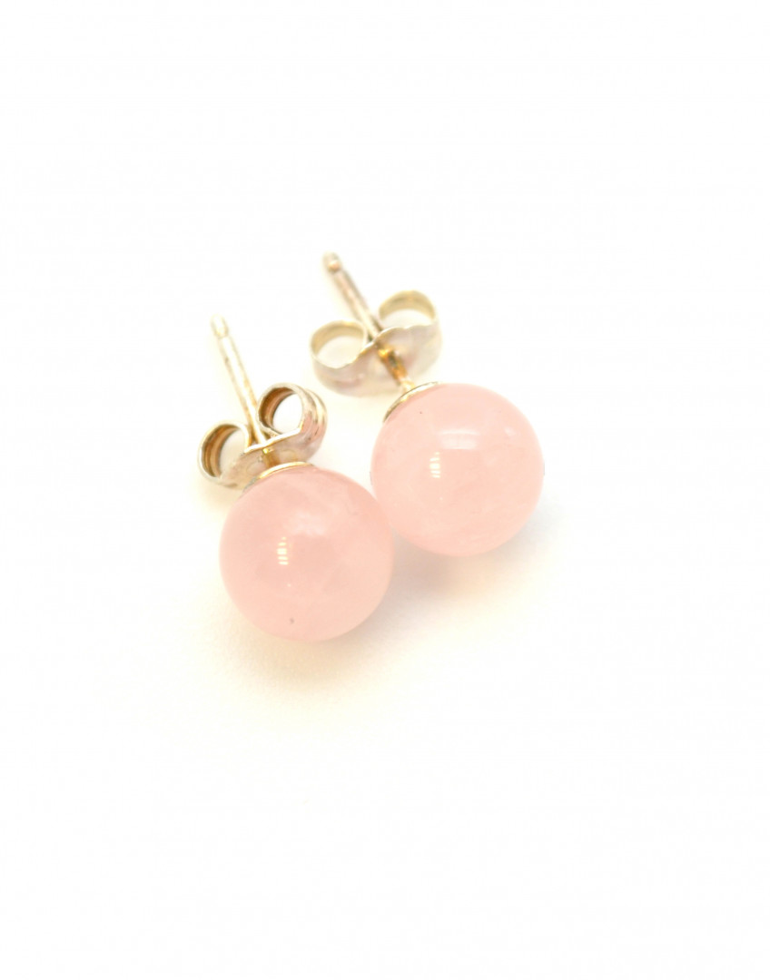 Ørepynt med 8mm kule i rosa kvarts med sølvstikk.