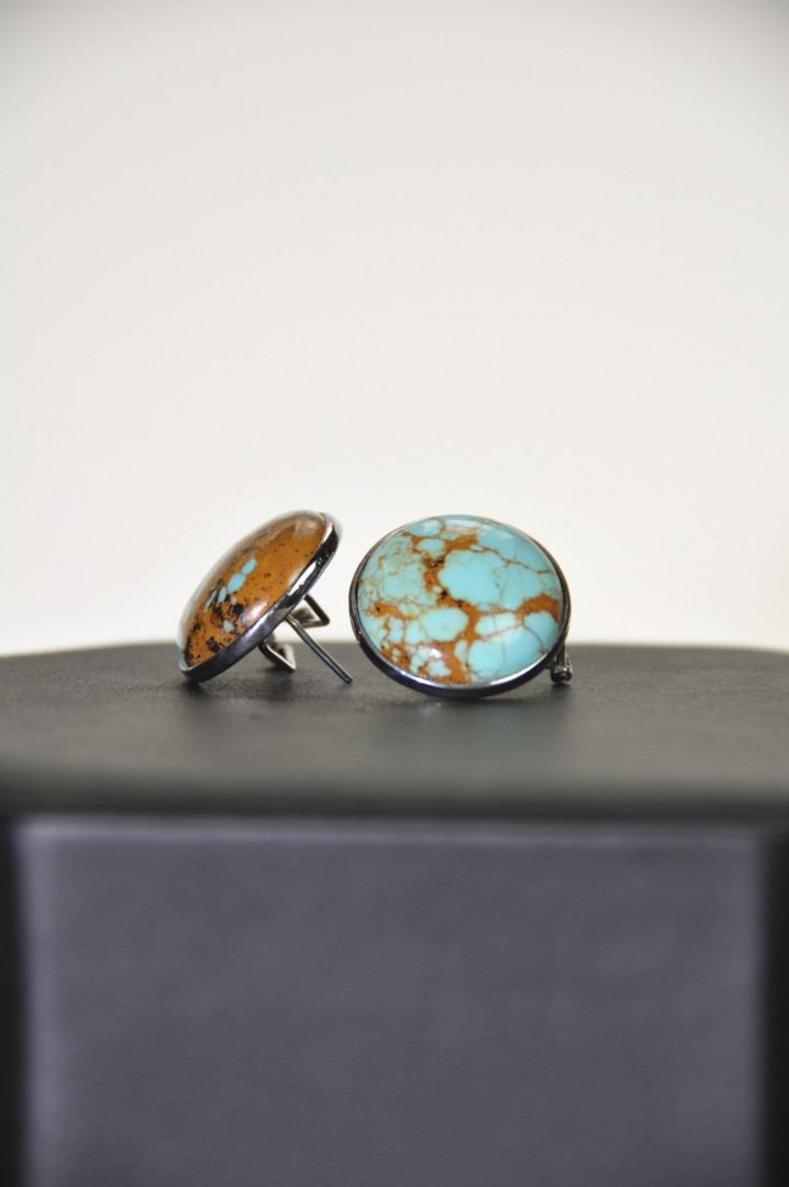 Flott, kraftig ørepynt med 20mm i turkis. Stenen ligger i sølvkasse og har sølvstikk med spesiell lås som hindrer øredobben i å falle fremrover. Sitter godt på øret.