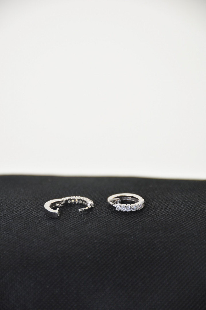 Øreringer i sølv med 7 små, slipte zirkoner. Lette å åpne og lukke.