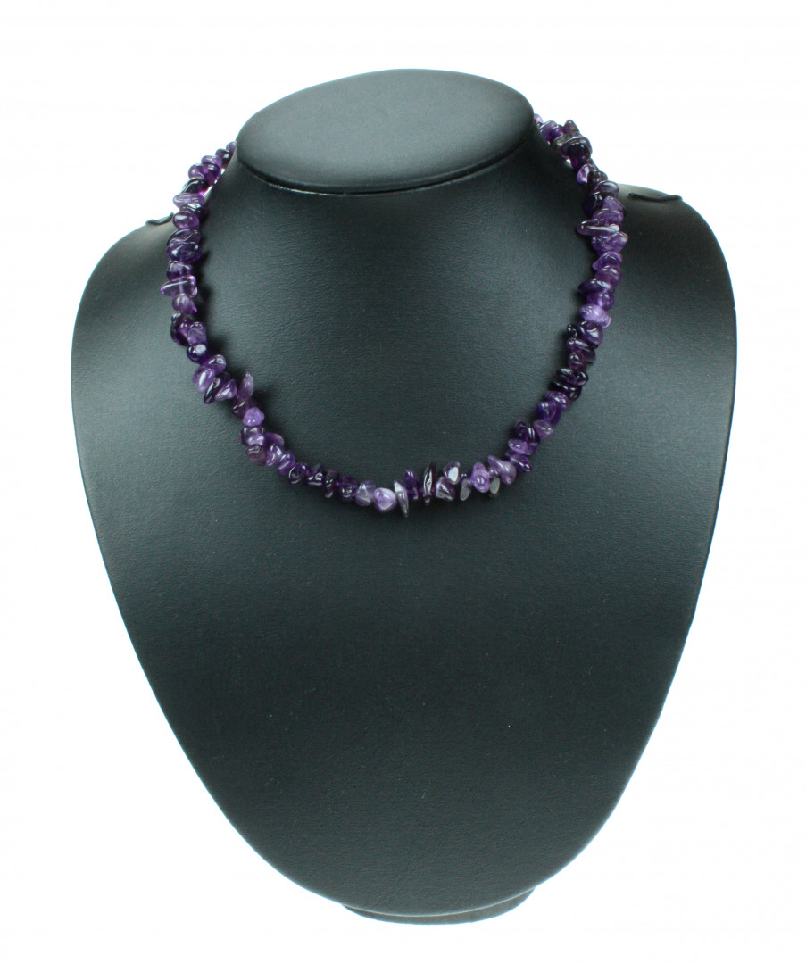 Kjede med kraftige chipsformede ametyst . Kort og lekkert lilla kjede med sølvlås.
