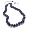 Kraftig blått kjede med flott kombinasjon av store kuler og tromlede polerte blå stein. Metallås. 45 cm langt.