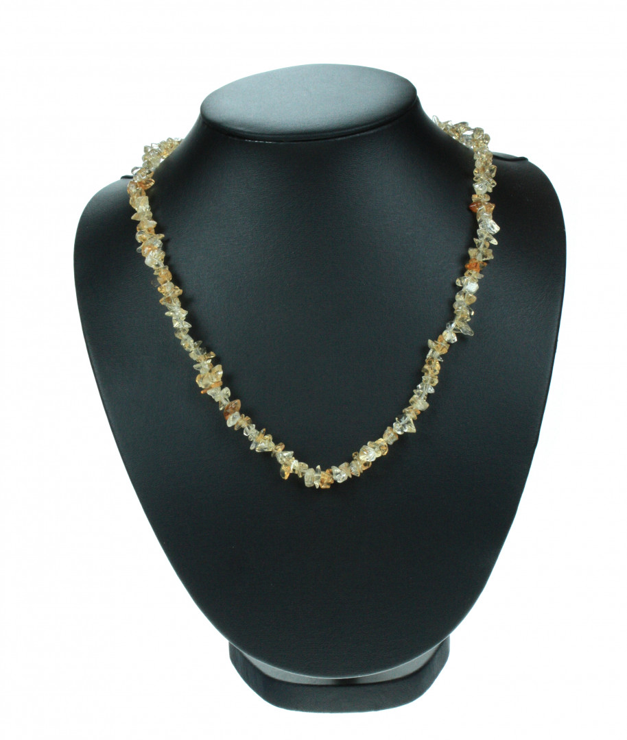 Chipskjede med gule, gyldne citrin. 61cm langt med sølvlås.