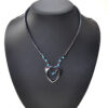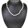 Kjede med 3 og 3 flate knotter i flott, marmorert beige agat med kvartskuler mellom . Kraftig lås i metall.