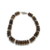 Kjede med 3 og 3 flate knotter i flott, marmorert beige agat med kvartskuler mellom . Kraftig lås i metall.