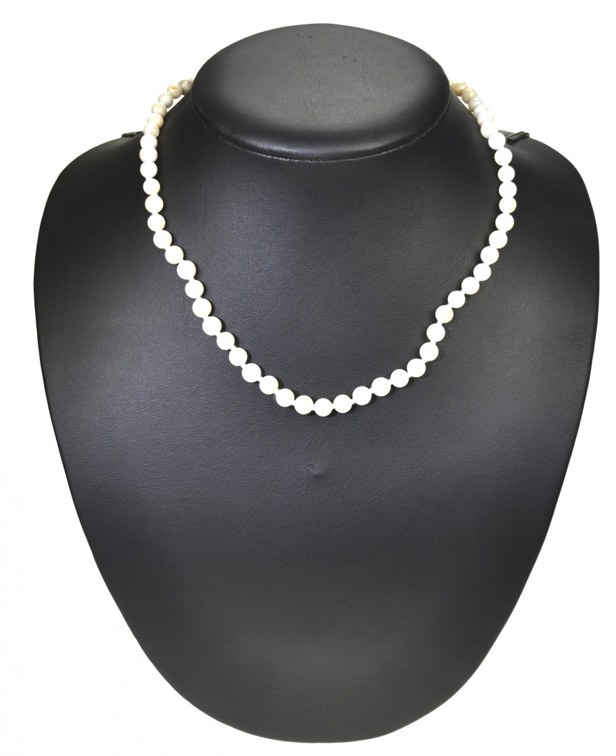 Halskjede med 8mm kuler i perlemor. 42cm langt