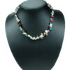 Halskjede i skinnende, gul aragonitt med chips i peridot og ametyst. Kjedet har 2 rader og enkel sølvlås.