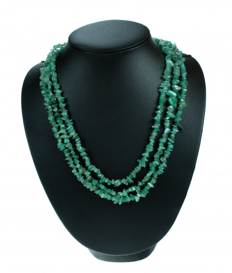 Chips-kjede med mix av stein i forskjellige farger, 3 rader i ulik lengde og enkel metallås.