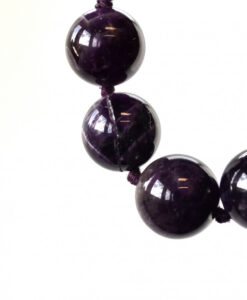 Kort kjede med store. kuler i ametyst og kraftig lås.