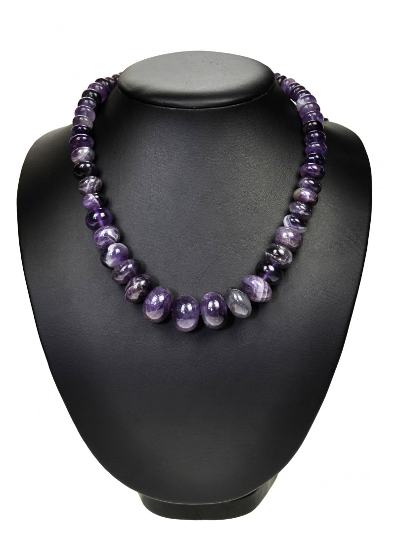 Halskjede med ametyst -«knapper» i økende størrelse fra 10-20mm. Kjedet har kraftig metallås.