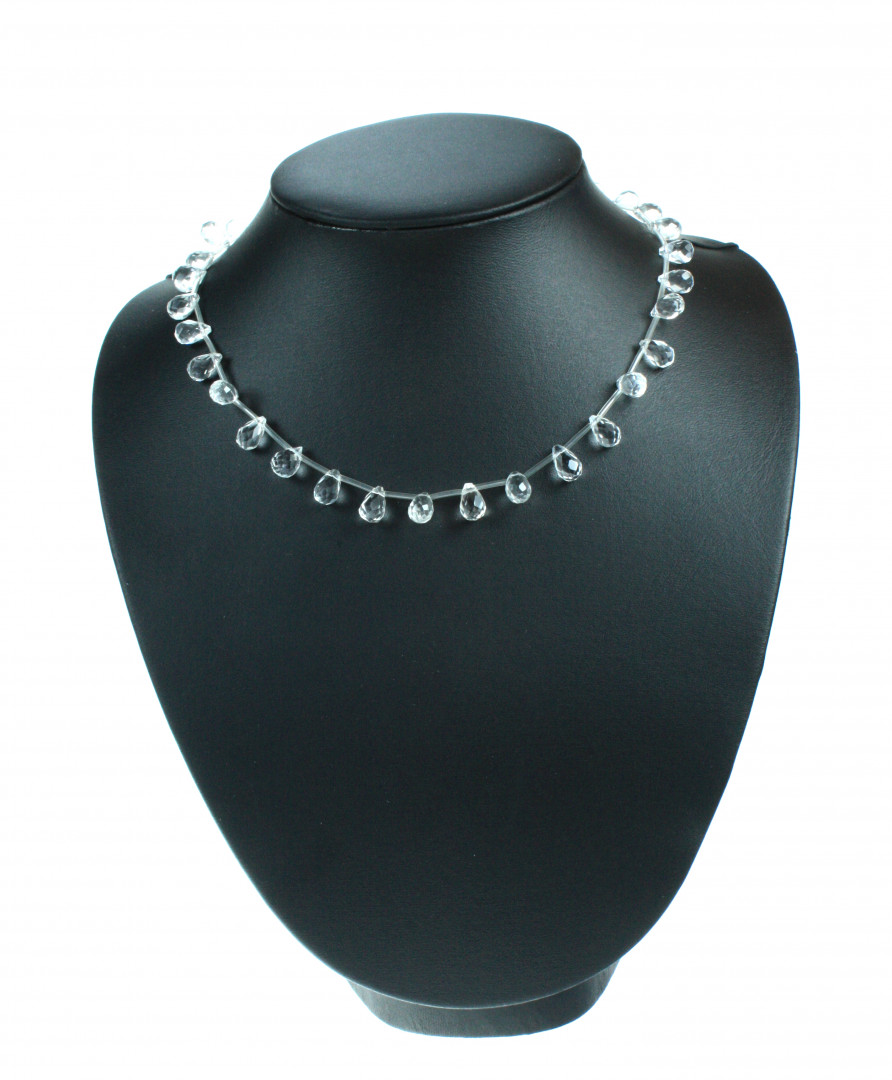 Kvarts halskjede med 7x10mm skinnende, facettslipte krystalldråper. 42cm langt med sølvlås.