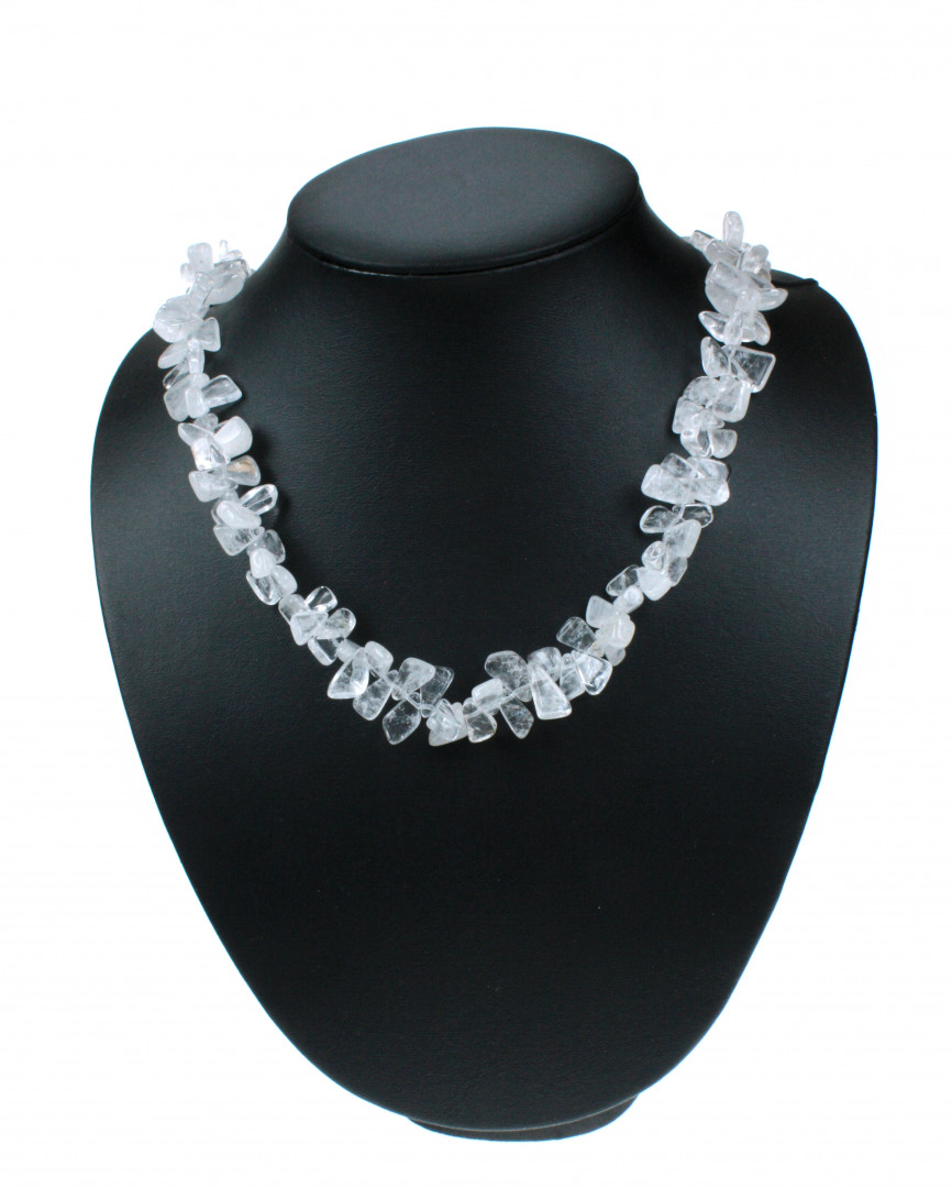 Kvarts halskjede med kraftige, uregelmessige chips i klar kvarts med sølvlås. Smykket gir deg en tøff og elegant stil. 61 cm langt.