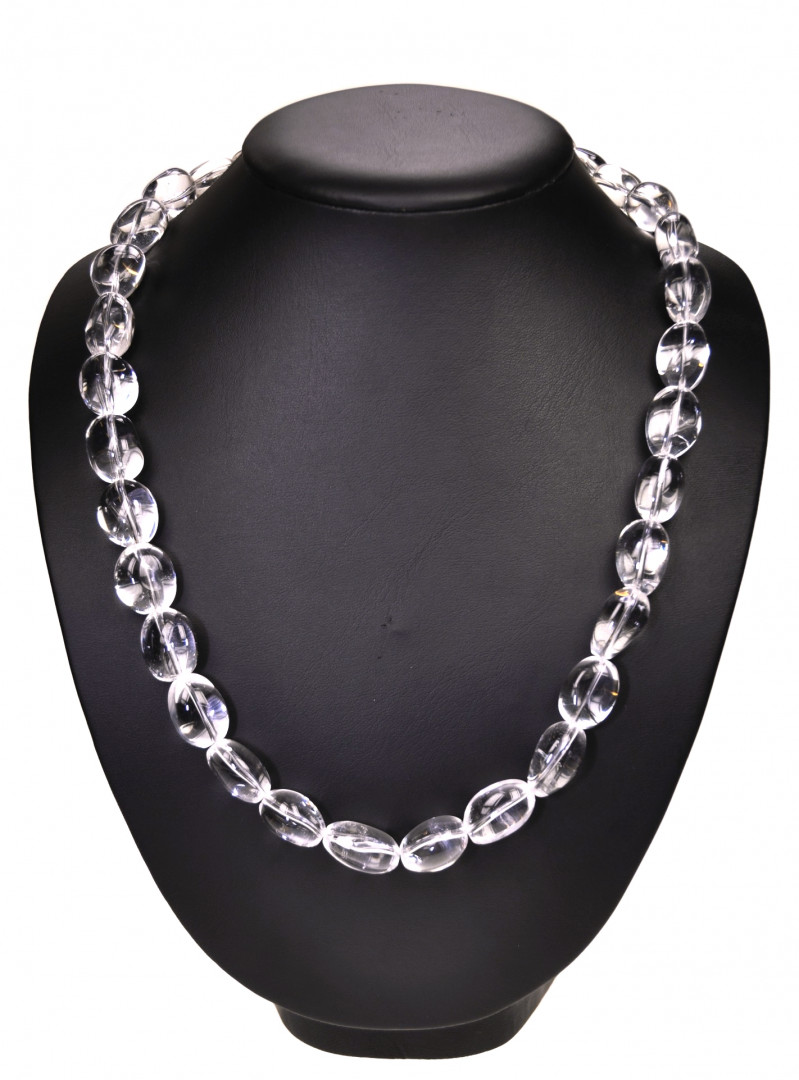 Halskjede med store klare bergkrystaller. 61 cm langt med metallås.