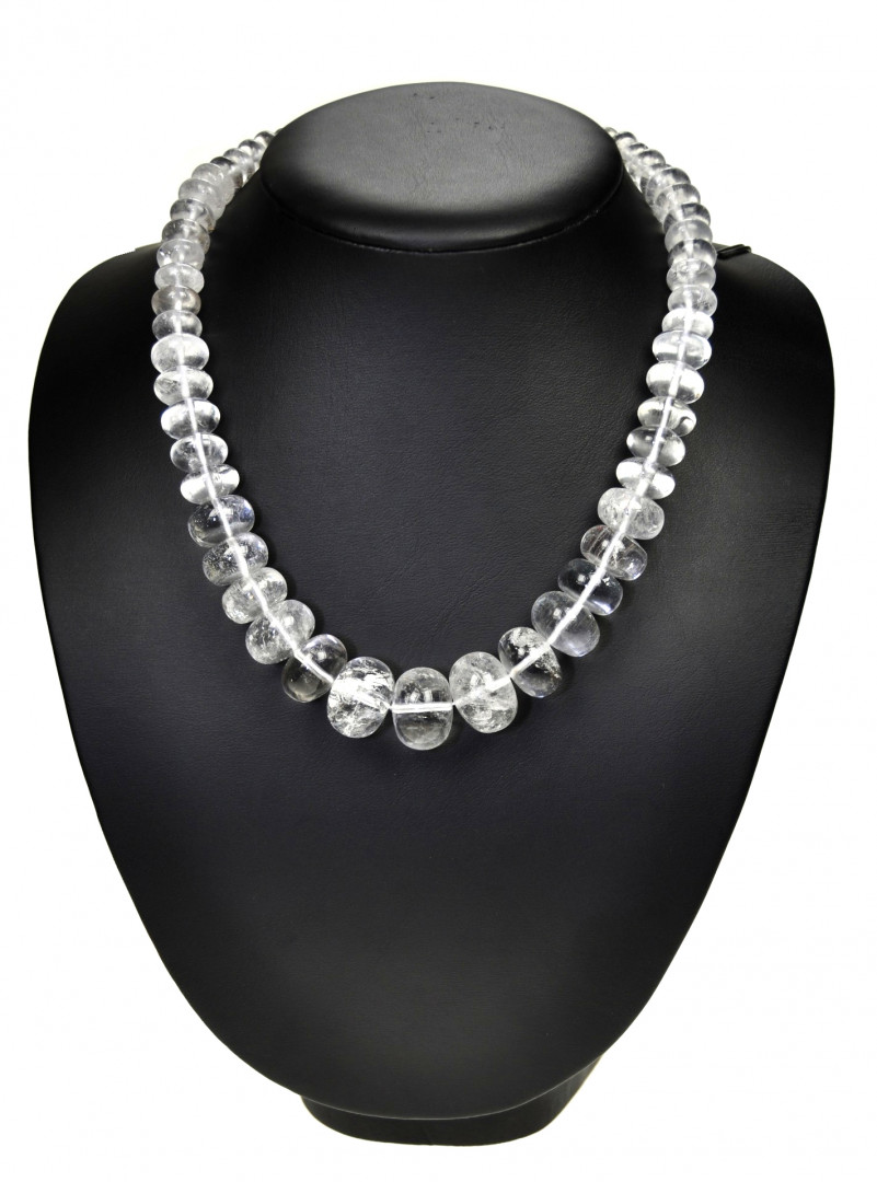 Halskjede med bergkrystall-«knapper» i økende størrelse fra 10-20mm. Kjedet har kraftig metallås.