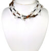 Kjede flettet med skjell og små sorte og hvite kuler.