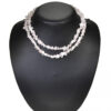 Chipskjede med tre rader i flott rosa kvarts som samles i en stor stein. 61 cm langt.