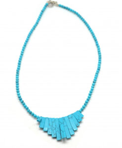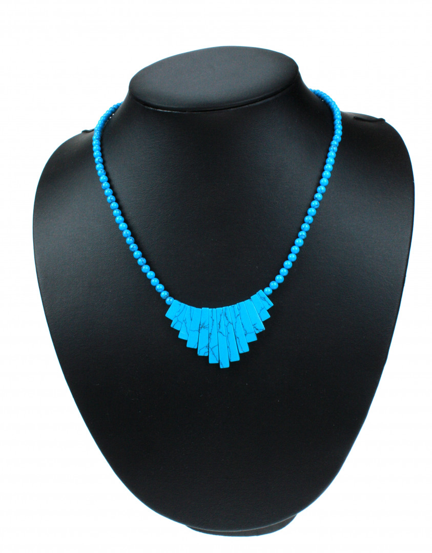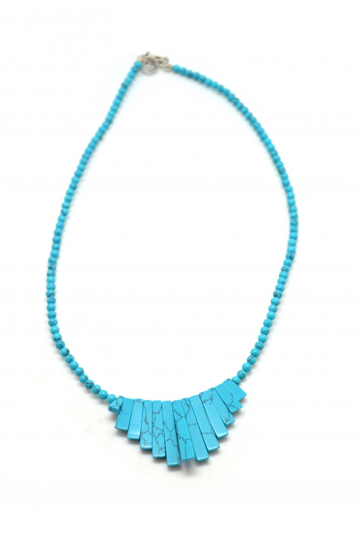 Kjede med 4mm kuler og vifte i turkis, 45 cm langt med sølvlås.