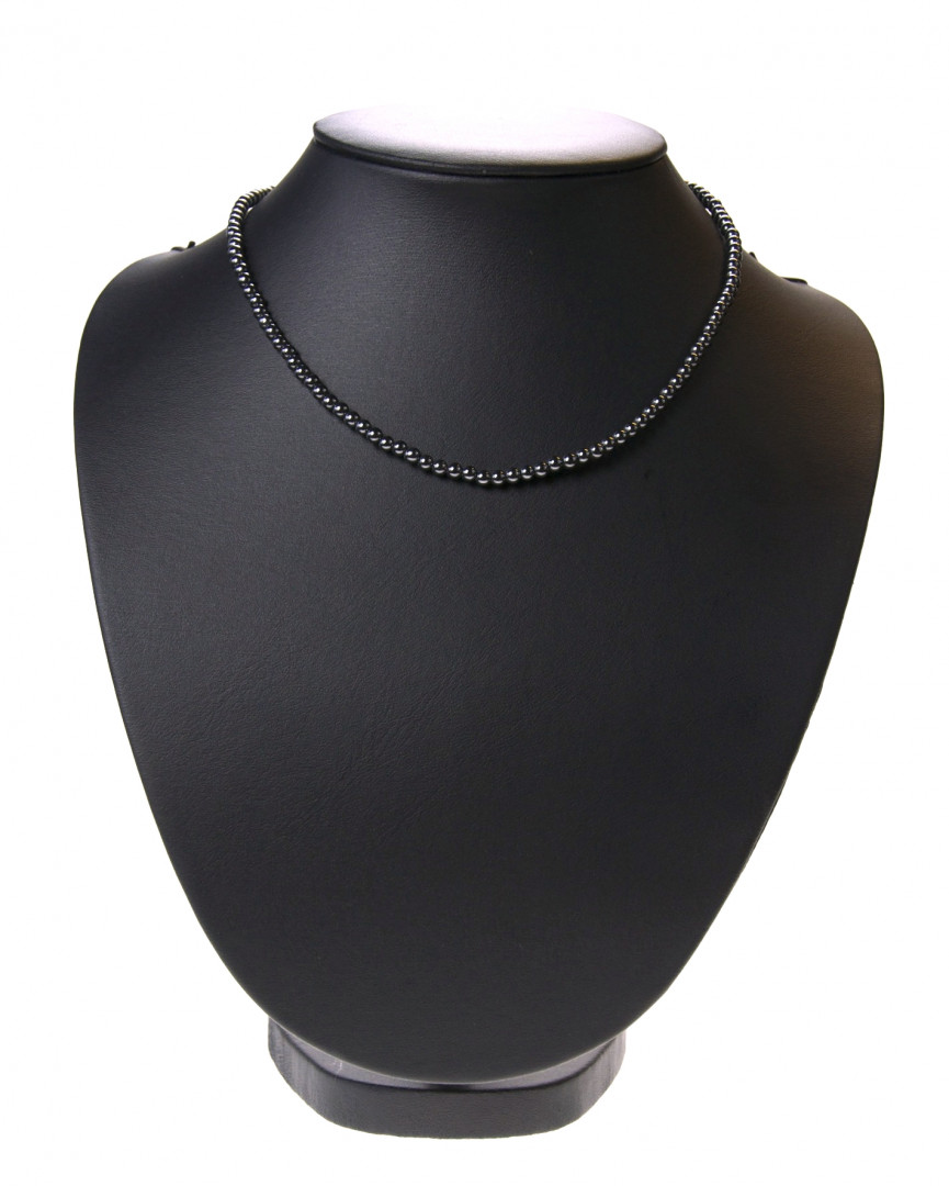 Kjede med 4mm kuler i hematitt. 45cm langt med sølvlås.