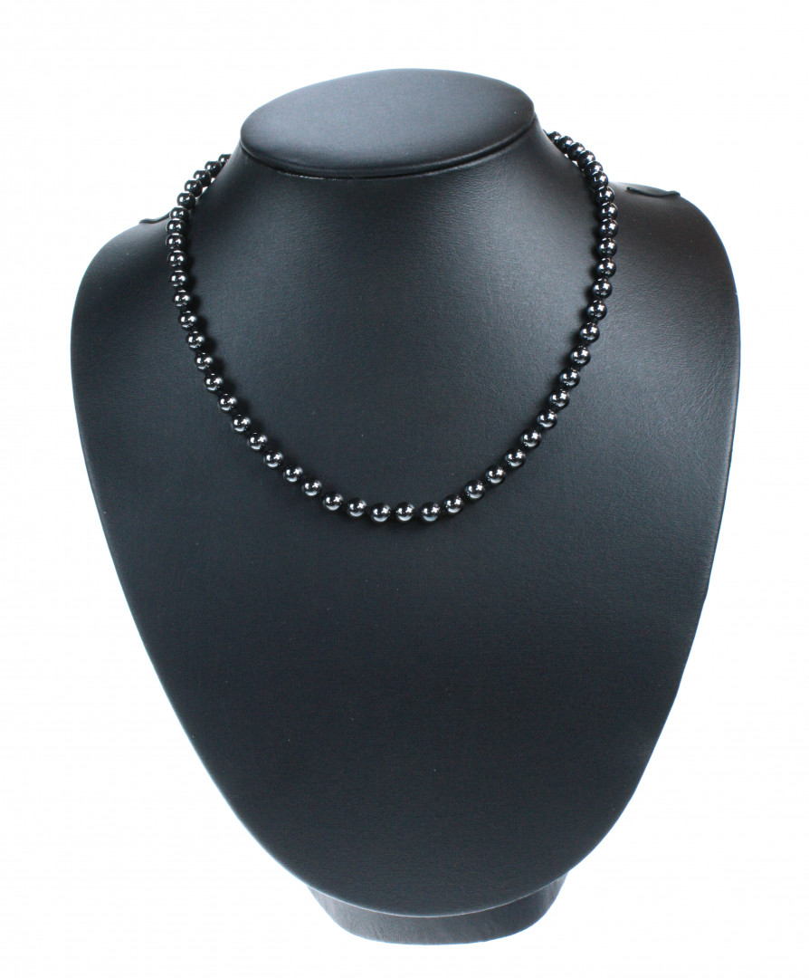 Hematitt-kjede med 6mm kuler og sølvlås.