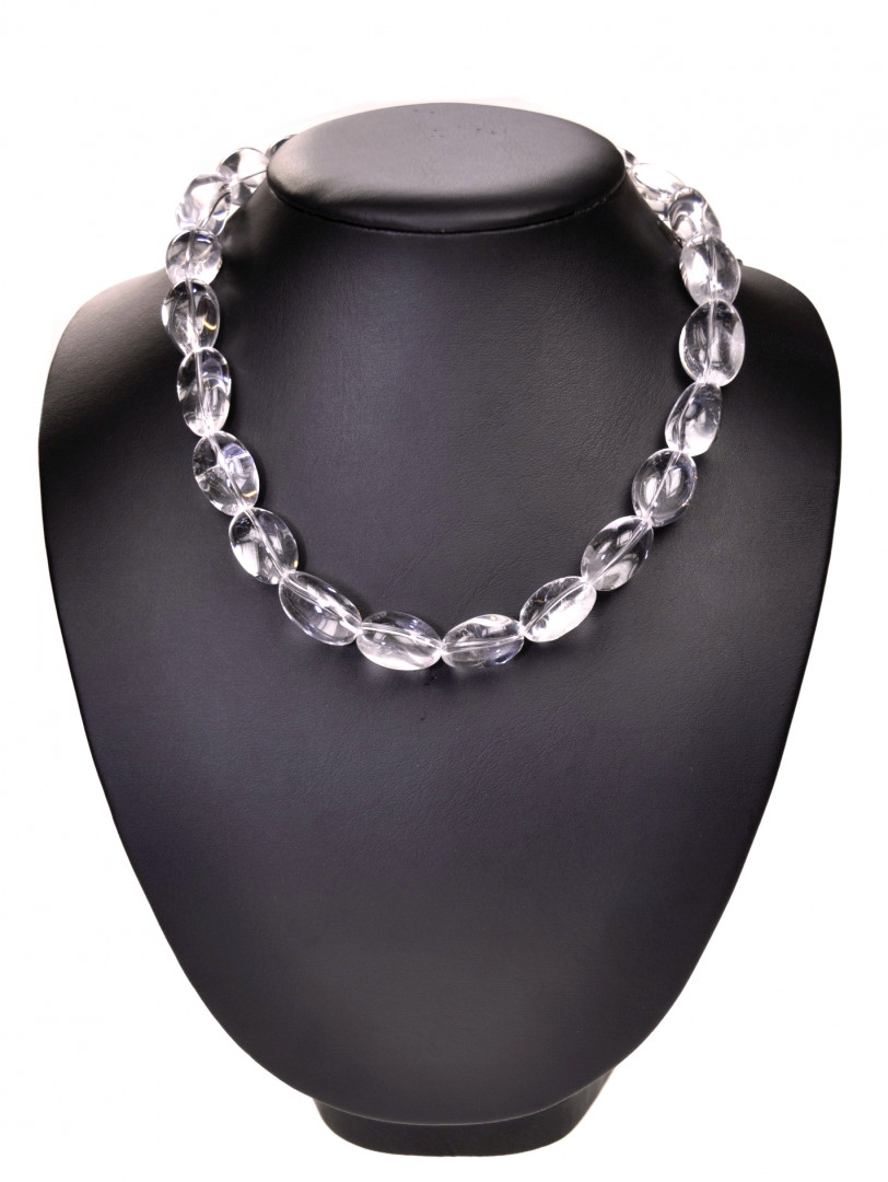 Kort halskjede med store klare bergkrystaller og sølvlås
