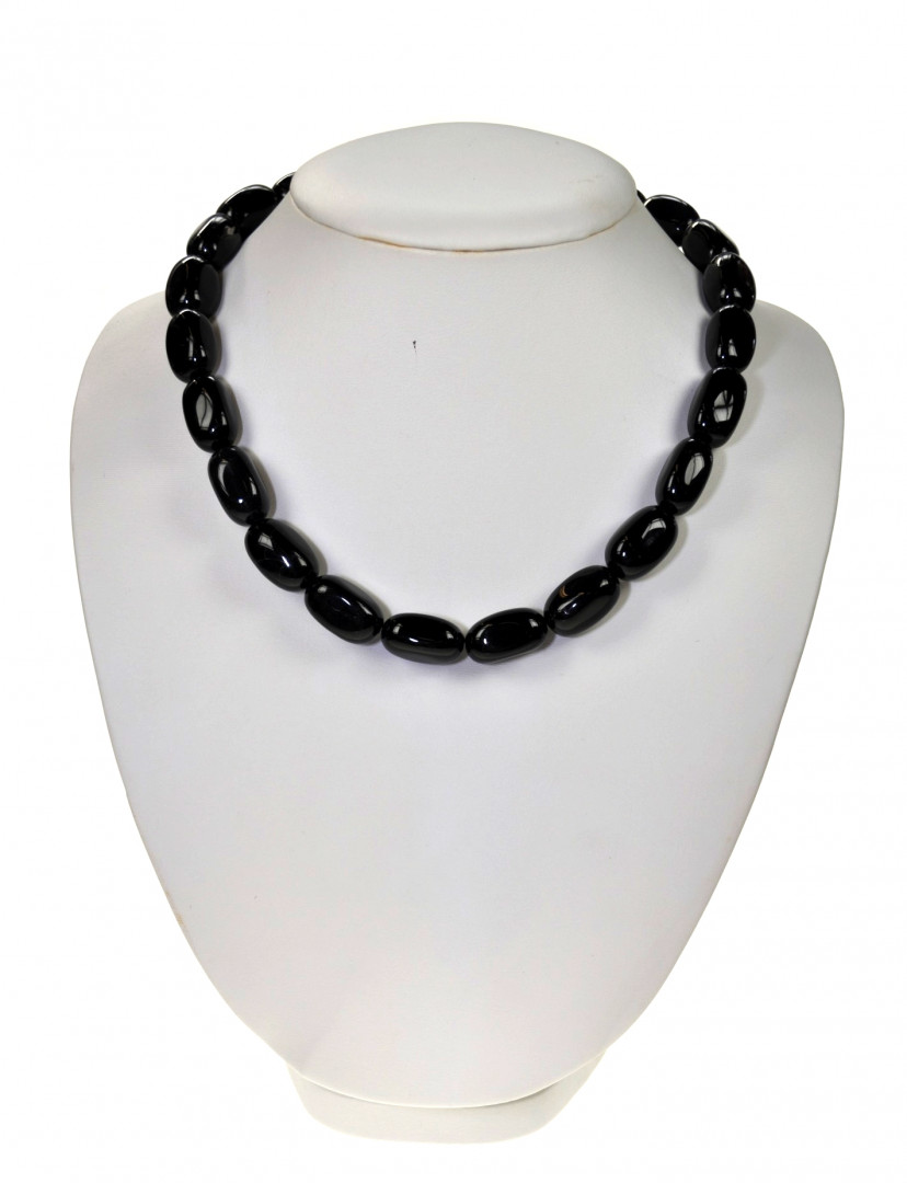 Kort kjede med kraftige sorte stein og sølvlås