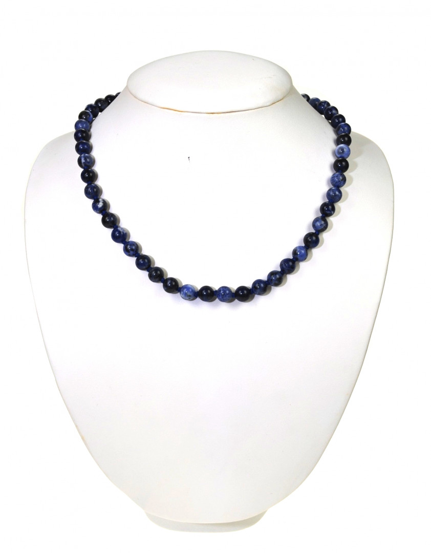 Halskjede i sodalitt med 8mm kuler. 45cm langt med sølvlås.