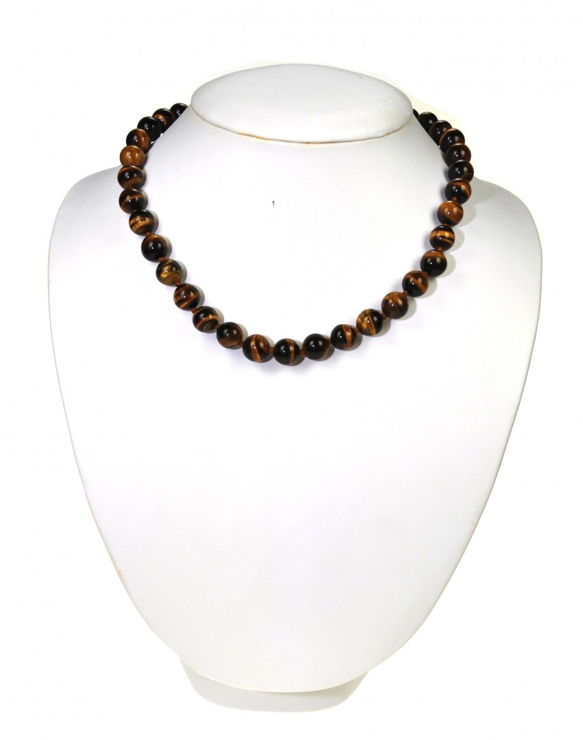 Halskjede med 10mm kuler i tigerøye. 42cm langt