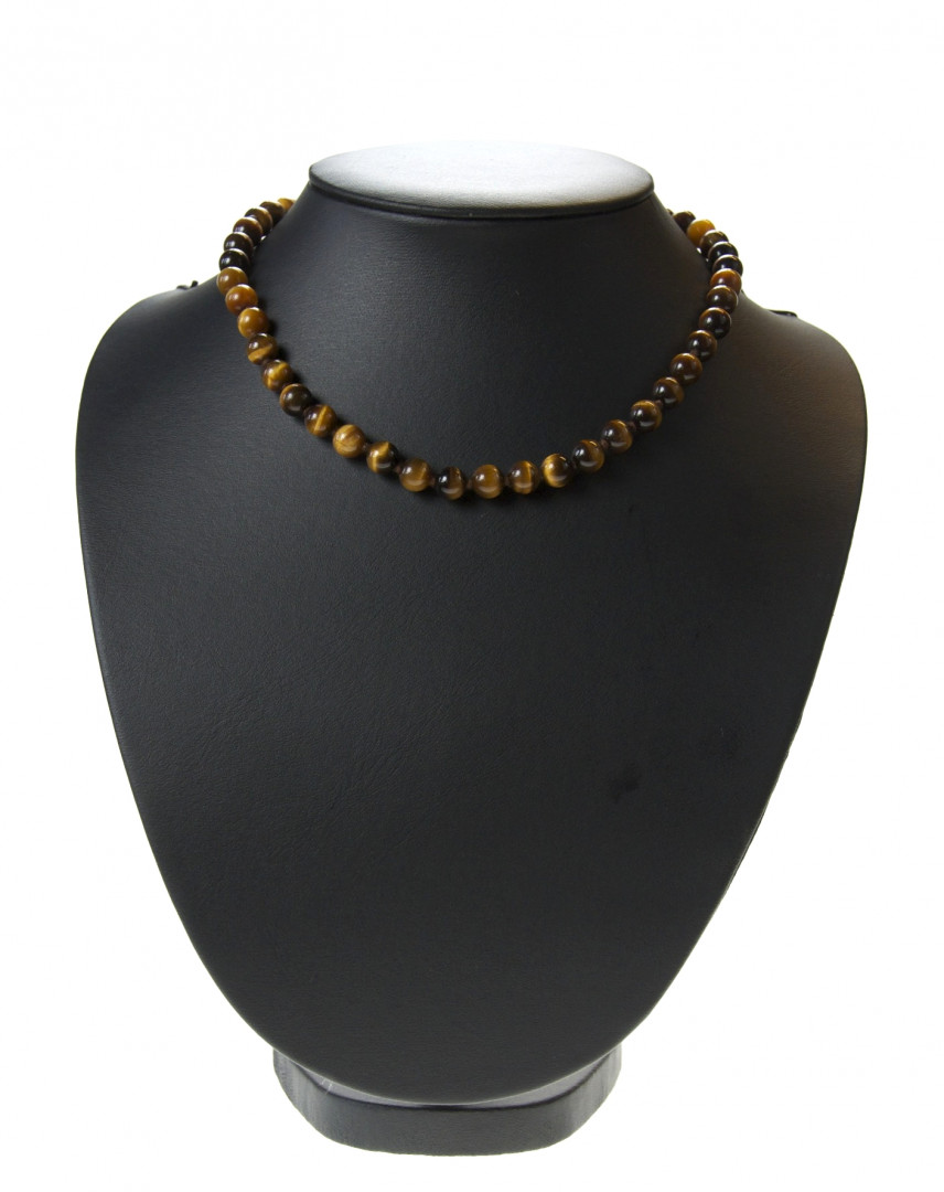 Halskjede med 8mm kuler i tigerøye. 45cm langt.
