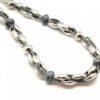 Langt kjede med frisk kombinasjon av turkise agat. turkisfarget lær og lekre metallanheng.
