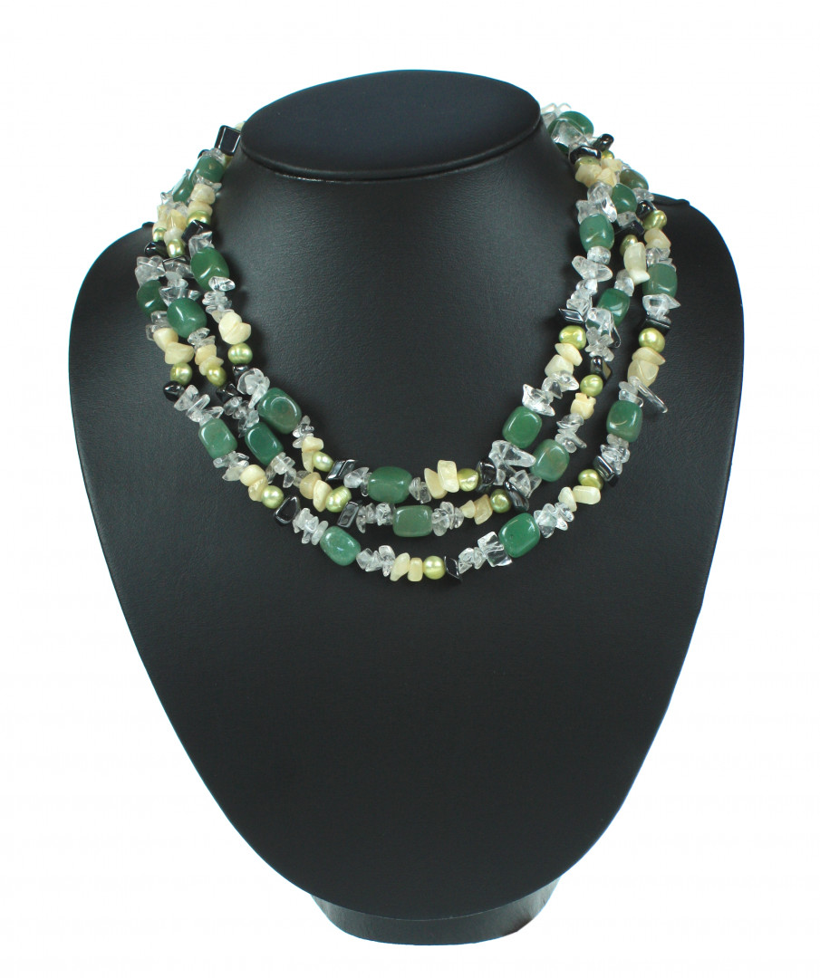 Langt kjede i grønn aventurin m/ lyse ferskvannsperler. 1,5m uten lås