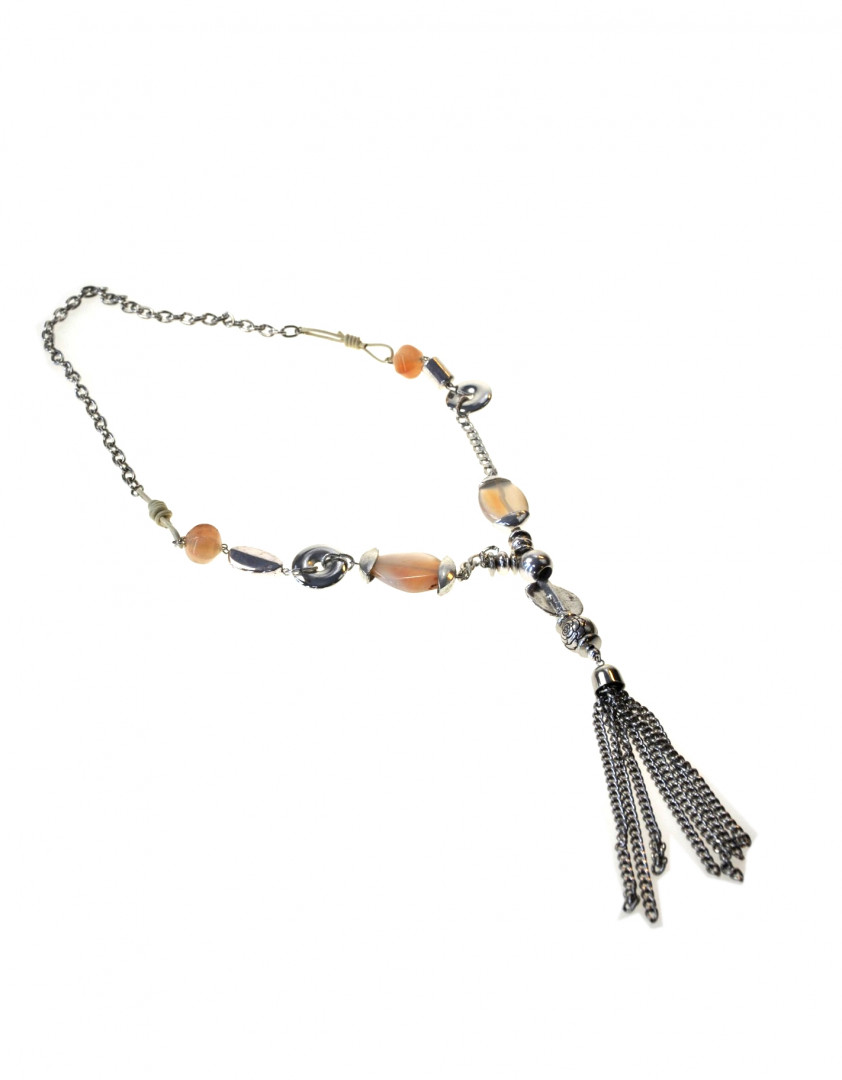Langt lyst kjede m/ mye metall og lyse agat steiner i flott kombinasjon