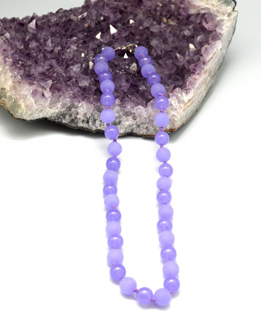 Lilla kjede med lyse kuler. Annenhver kule er polert og matt for en flott effekt. Sølvbelagt lås. 45 cm langt.