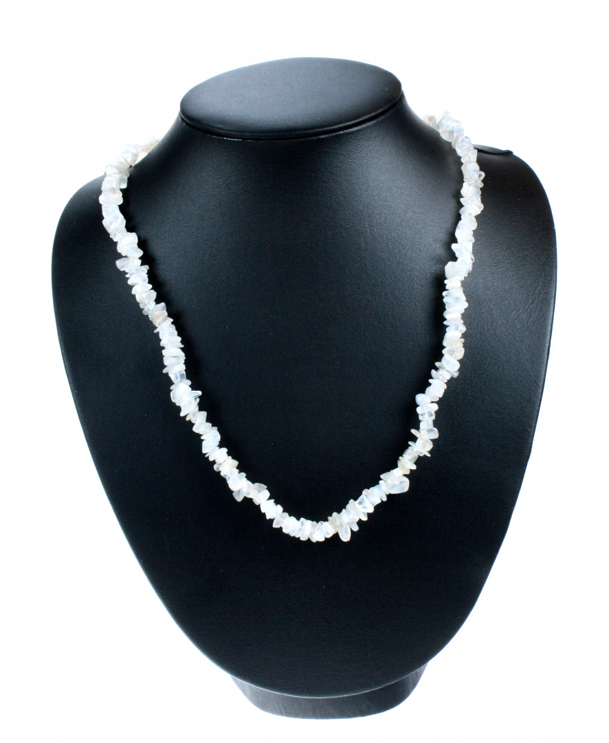 Månesteinskjede med skinnende små chips. Et lett og lyst kjede som er 61cm langt med sølvlås.