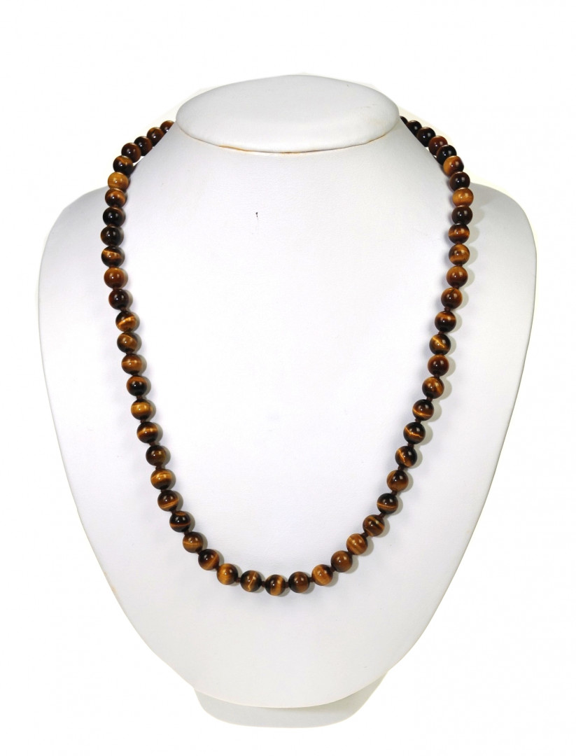 Halskjede med 8mm kuler i tigerøye. 61cm langt.