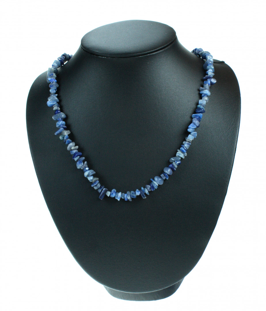 Chipskjede i lekker blå topas. 61 cm med sølvlås.