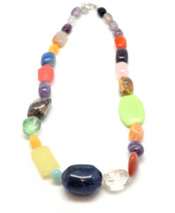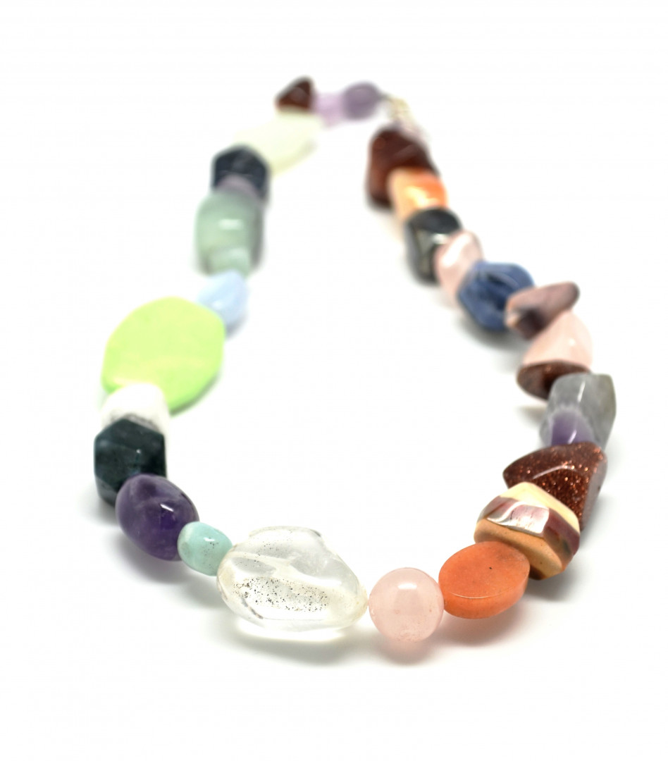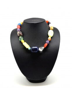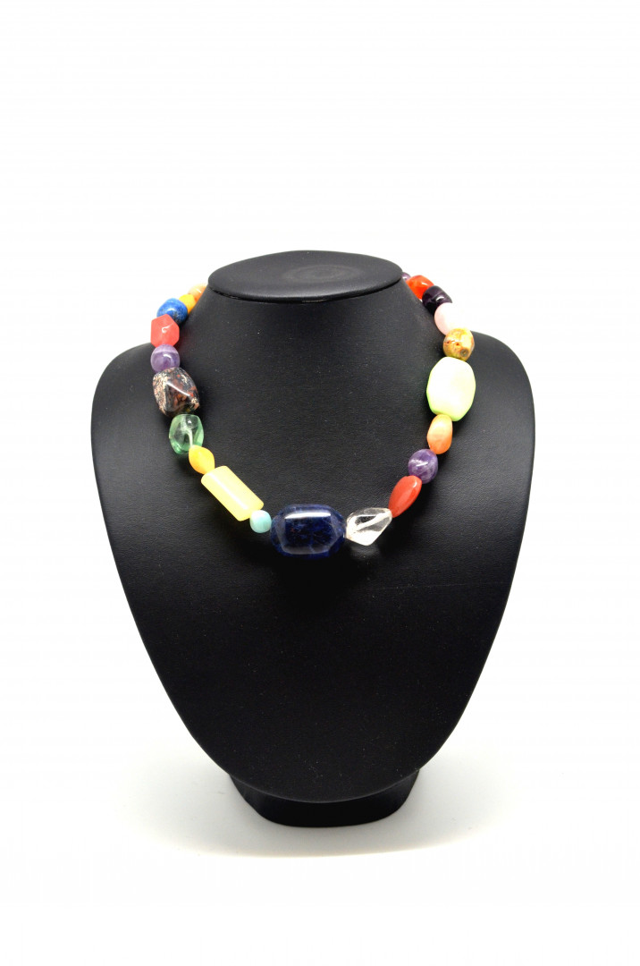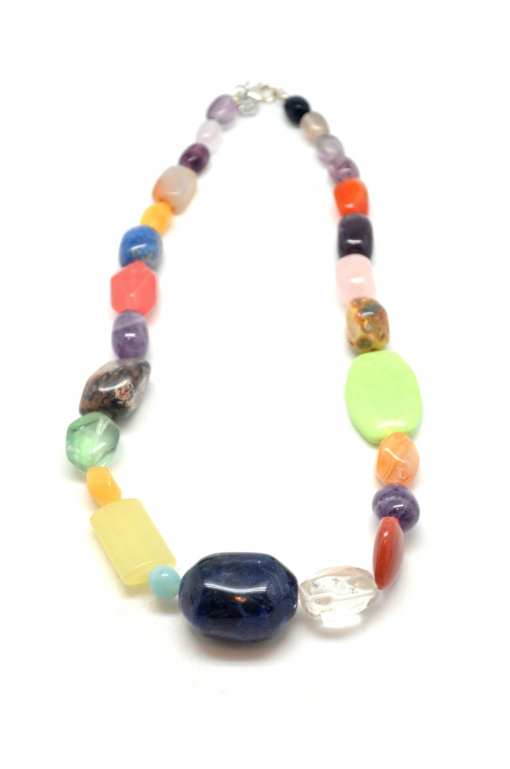 Et unikt halskjede med kreativ mix av kraftige stein og flotte farger. Frisker opp ethvert antrekk!