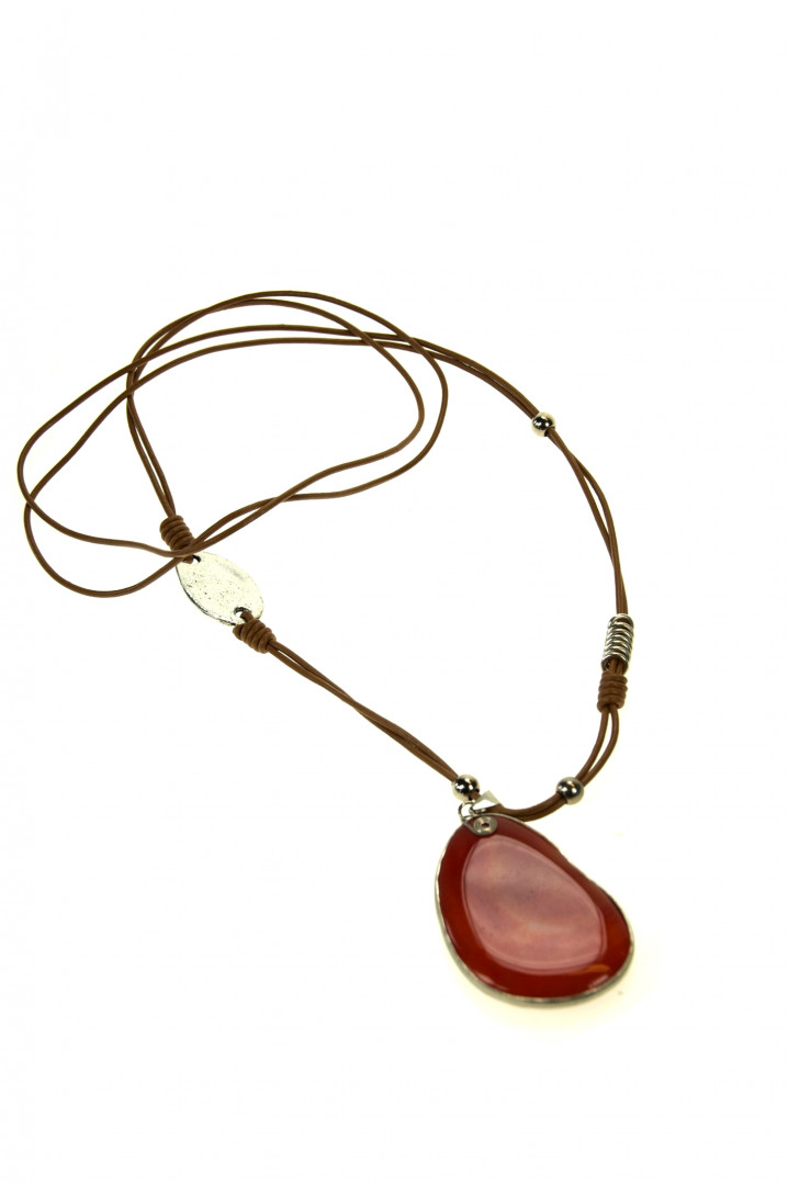 Langt lærkjede i varm oransje med lekker stor agatskive og lekre metalldetaljer