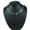 Pauaskjell-kjede med dråpeformede blå/grønne pauaskjell og sølvlås.