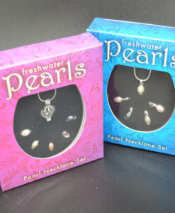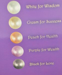 Perlesett med 5 perler i hvit, krem, fersken, lilla og sort. Perlene settes inn i «buret» som henger i kjedet. Dette kan enkelt åpnes og lukkes slik at man får 5 forskjellige anheng å bytte på. Kjedet er 45 cm langt, sølvbelagt og har kraftig lås.