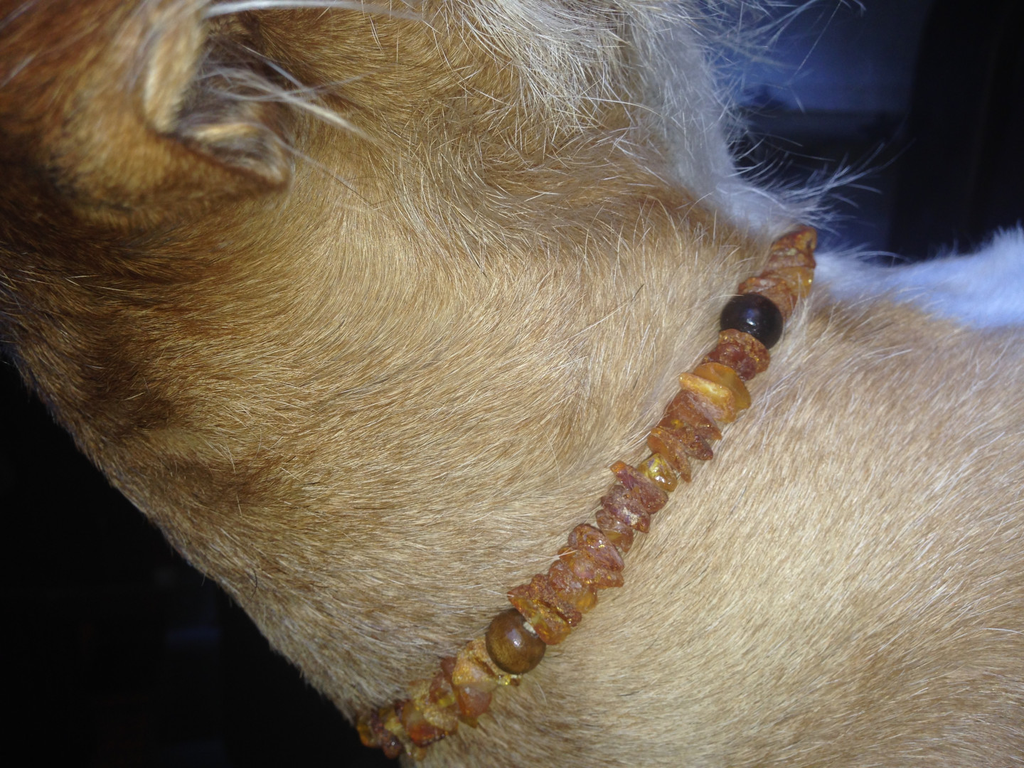 Hundebånd med ekte ravsteiner som ved hjelp av gnissing mot pelsen, holder flåtten borte. Til stor hund.