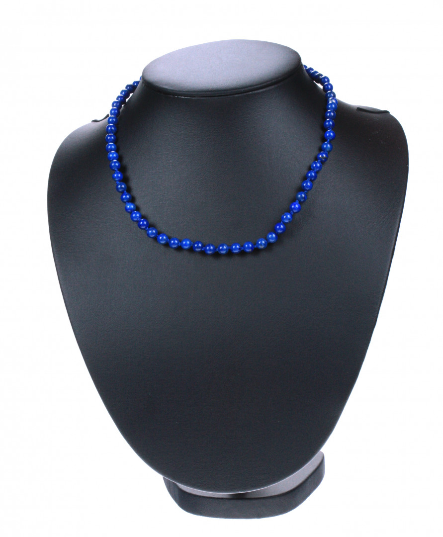 Lapis halskjede med den unike blåfargen. Den flotte fargen og den spesielle smykkesteinen gjør alle antrekk ekstra elegante. Kjedet kan reguleres i lengden ved å trekke i trådene bak. 45 cm på det korteste.