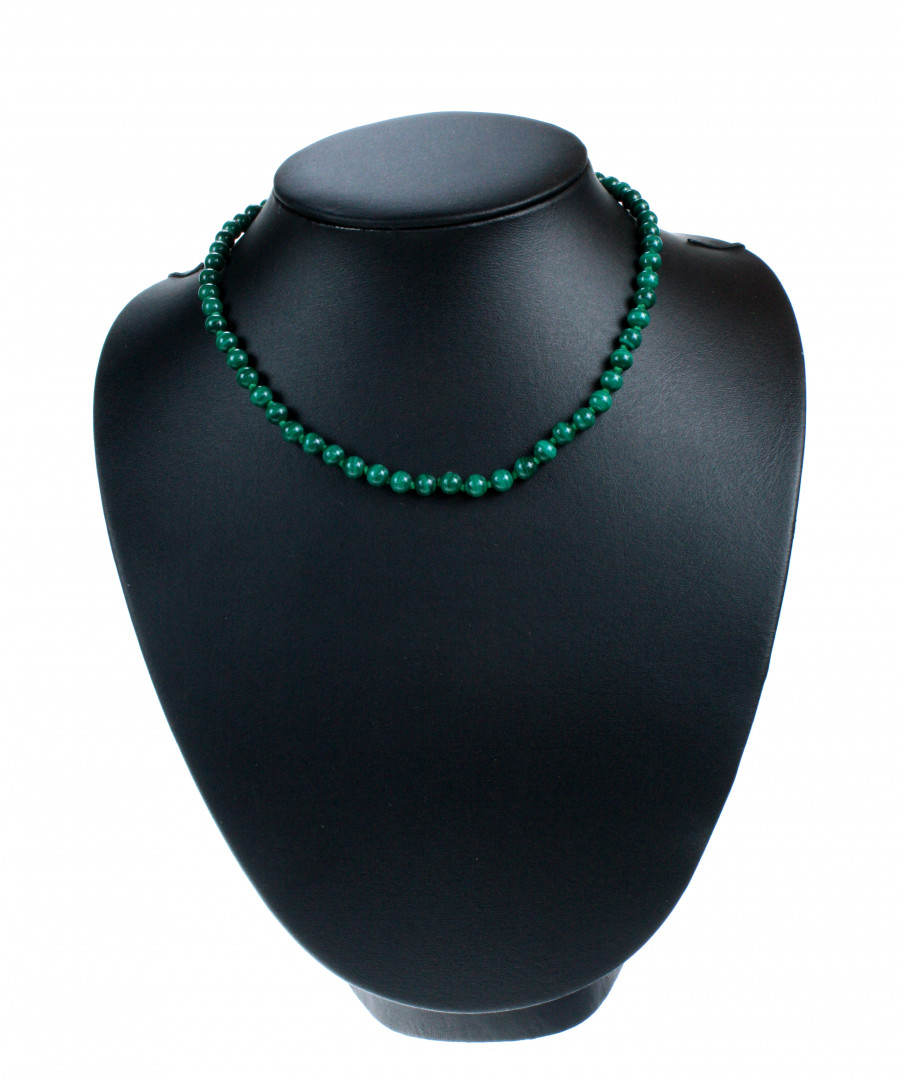 Malakitt halskjede med den unike blåfargen. Den flotte fargen og den spesielle smykkesteinen gjør alle antrekk ekstra elegante. Kjedet kan reguleres i lengden ved å trekke i trådene bak. 45 cm på det korteste.