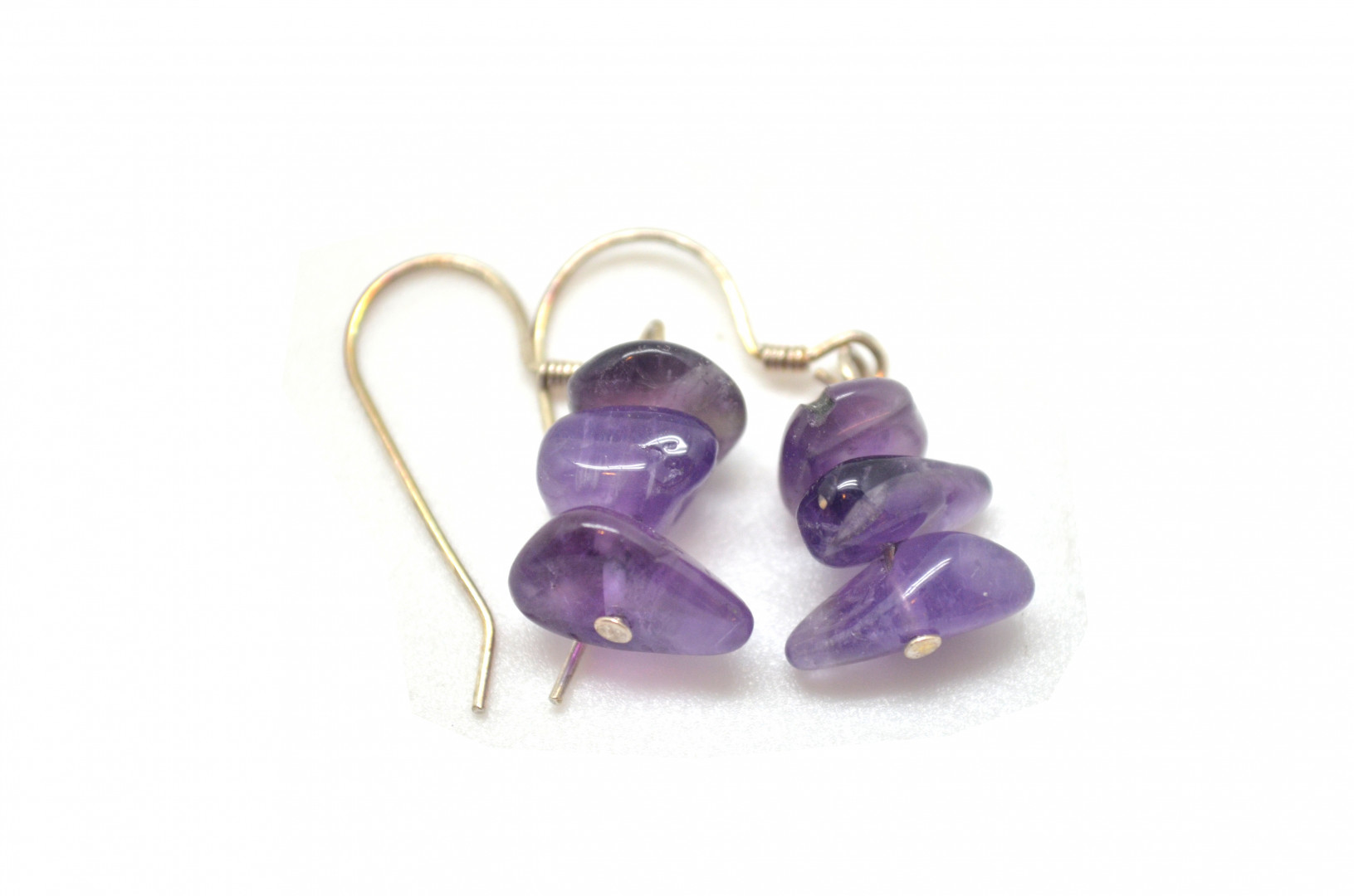 Kraftige chipsørepynt i flott, lilla ametyst med sølvkrok.